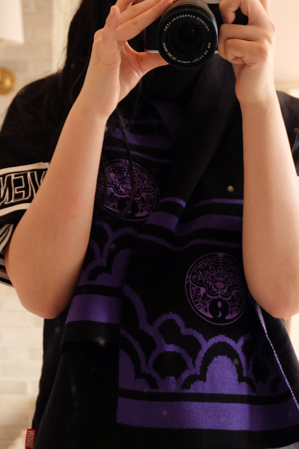 24cmX180cm 사이즈의 니트 목도리가 포근하고 부담스럽지 않게 목을 감싸 줍니다.