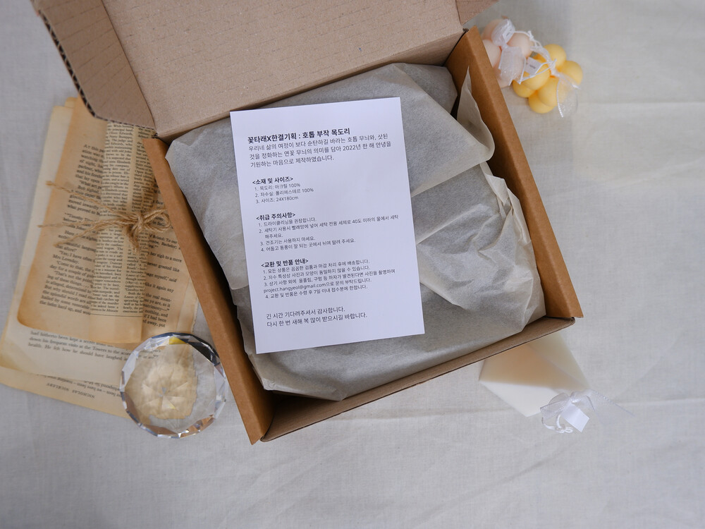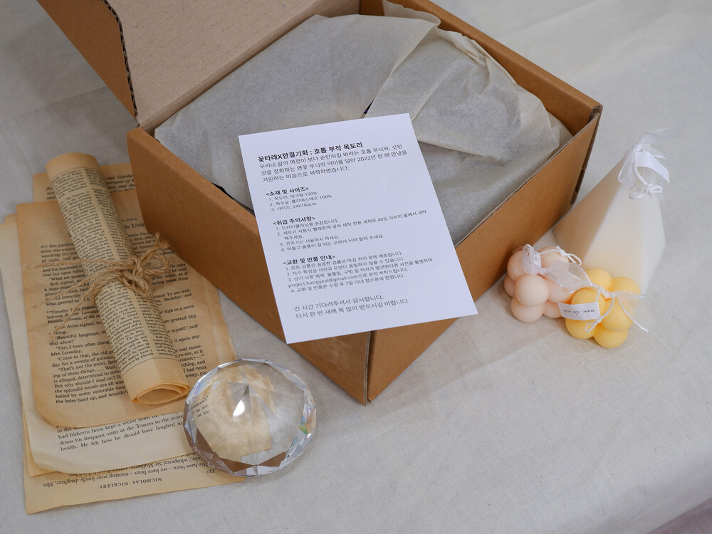 창작자 꽃타래님과 한결기획이 호톱 부작 목도리를 만들었습니다.